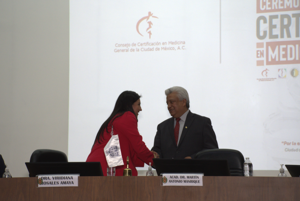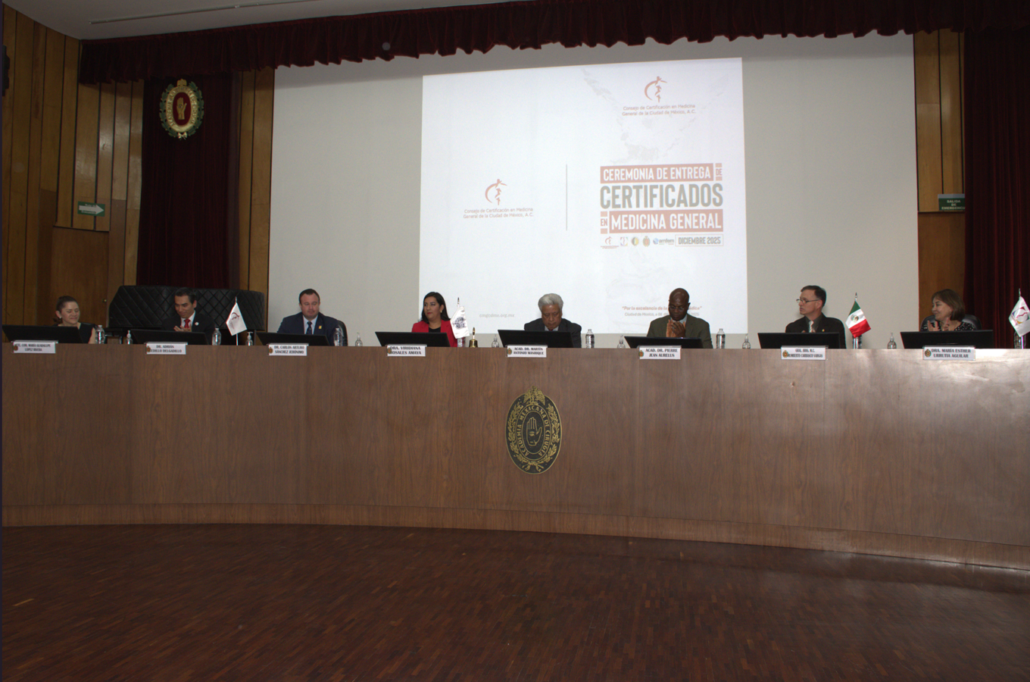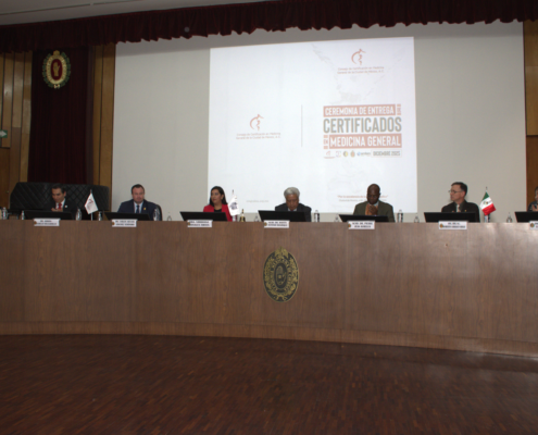 El pasado 06 de diciembre se llevó a cabo, en el auditorio de la Academia Mexicana de Cirugía, la Ceremonia de Entrega de Constancias de Aprobación y Certificados en Medicina General, un acto que reconoce el esfuerzo y la vigencia profesional de las y los médicos que se desempeñan en el primer nivel de atención en México. Con la presencia y participación de distinguidas instituciones y representantes del sector salud y educativo: